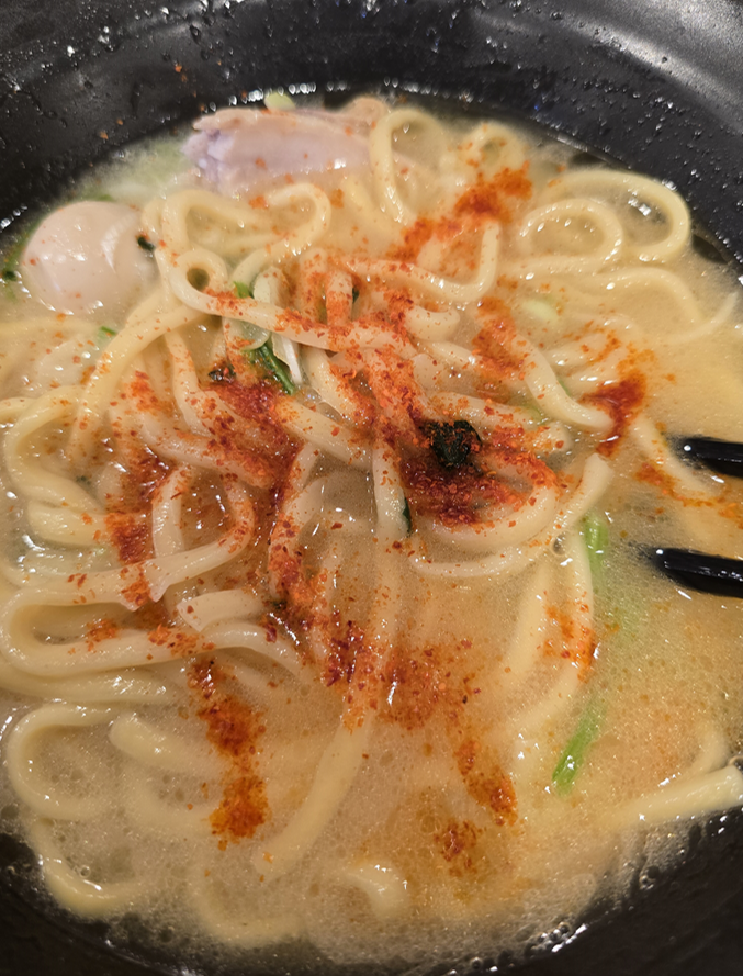 절반쯤 먹었을 때 매운 고춧가루를 뿌려서 같이 먹으면 그거대로 엄청 맛있습니다.