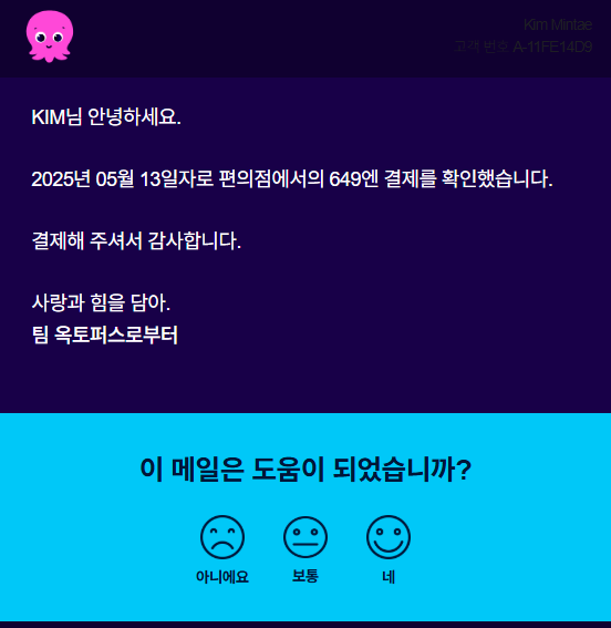마지막으로 메일을 확인해 보면 결제가 완료되었다는 메일이 도착했습니다.
