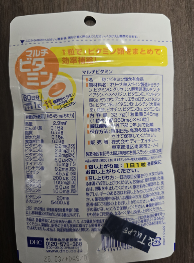 제품명: DHC マルチビタミン (멀티비타민)