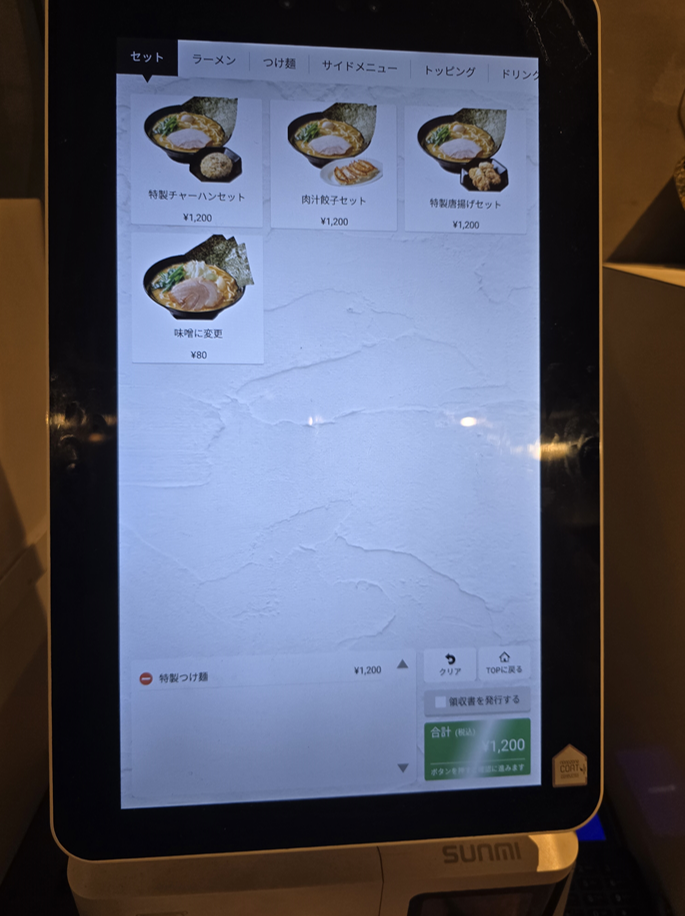 테이블 중심에 자판기식 주문 시스템이어서 혼밥하기도 좋아요.