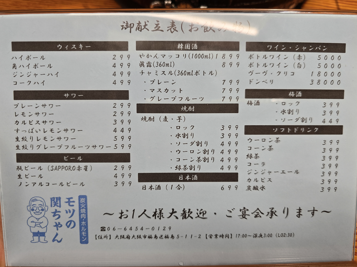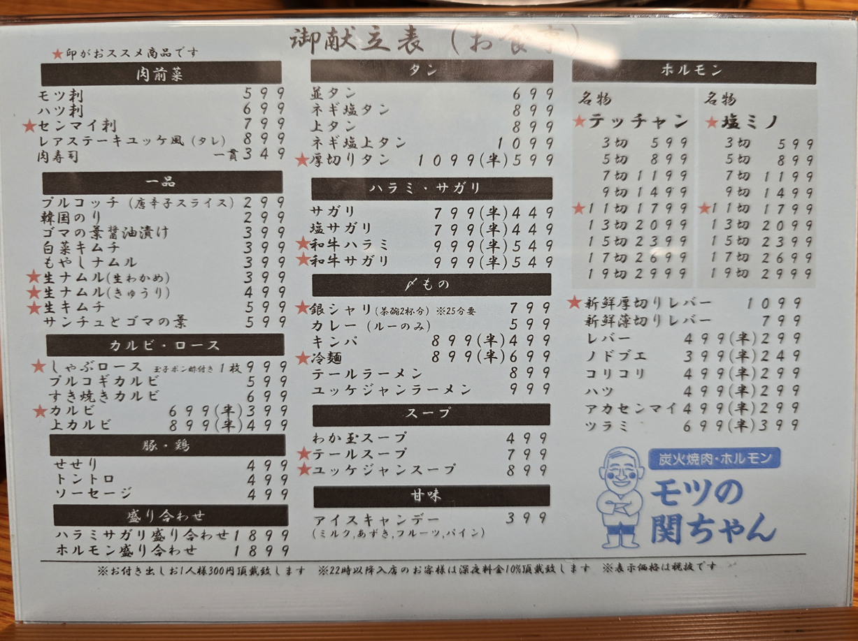 모츠노 세키짱(モツの関ちゃん) 숯불 야끼니쿠 전문점이에요.