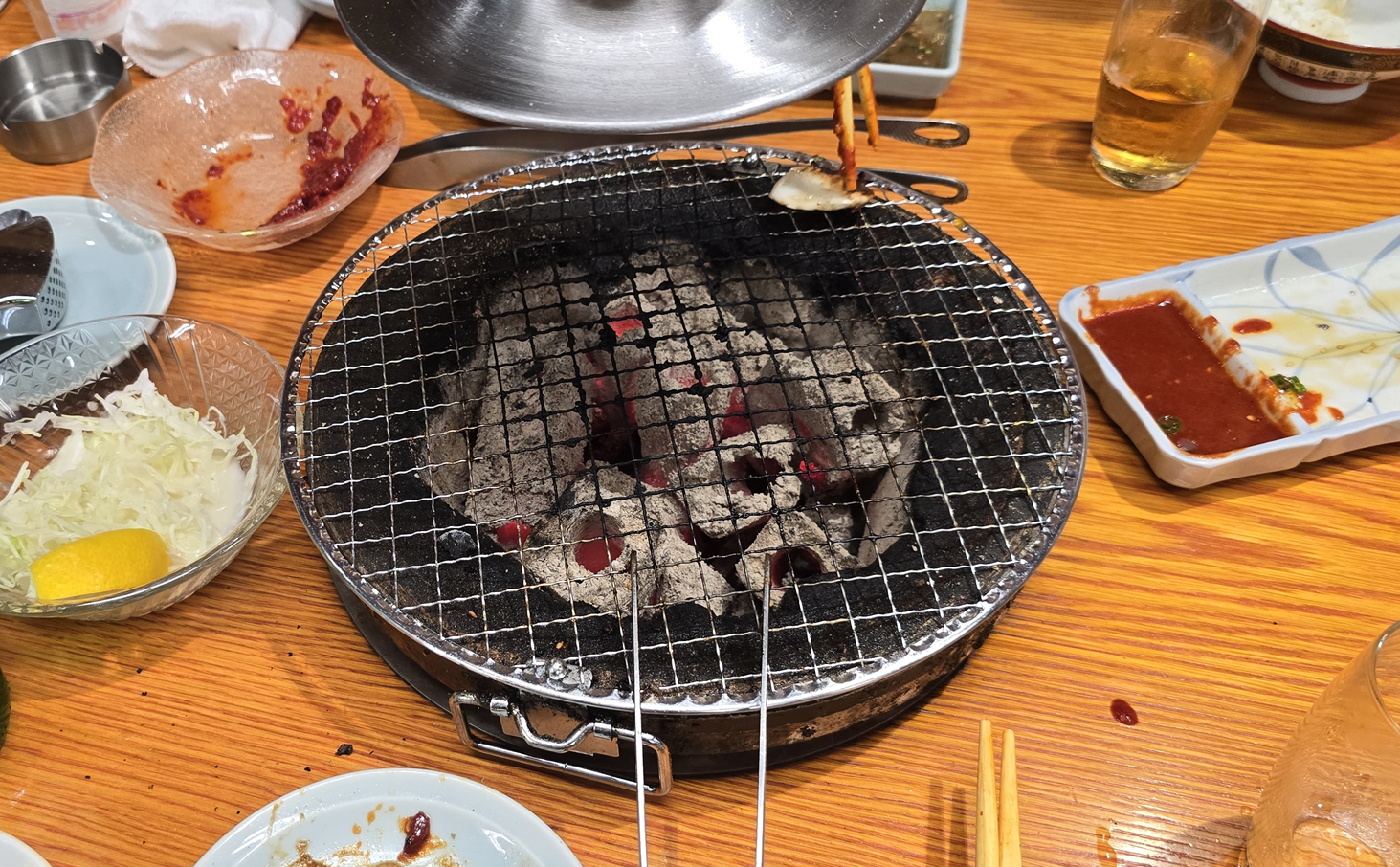 직원분께서 곧이어 숯불을 넣어주셨어요.