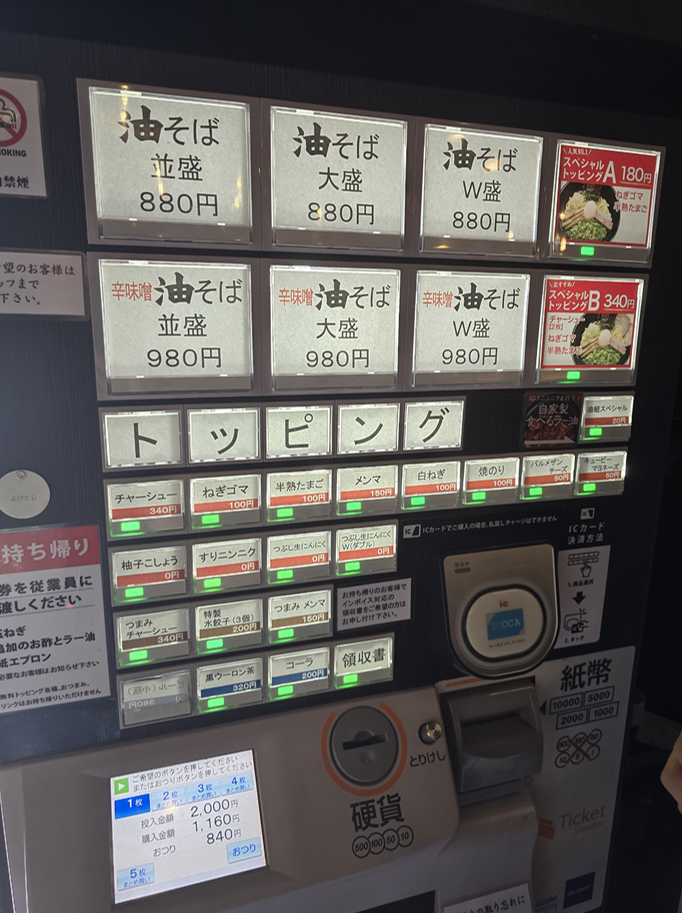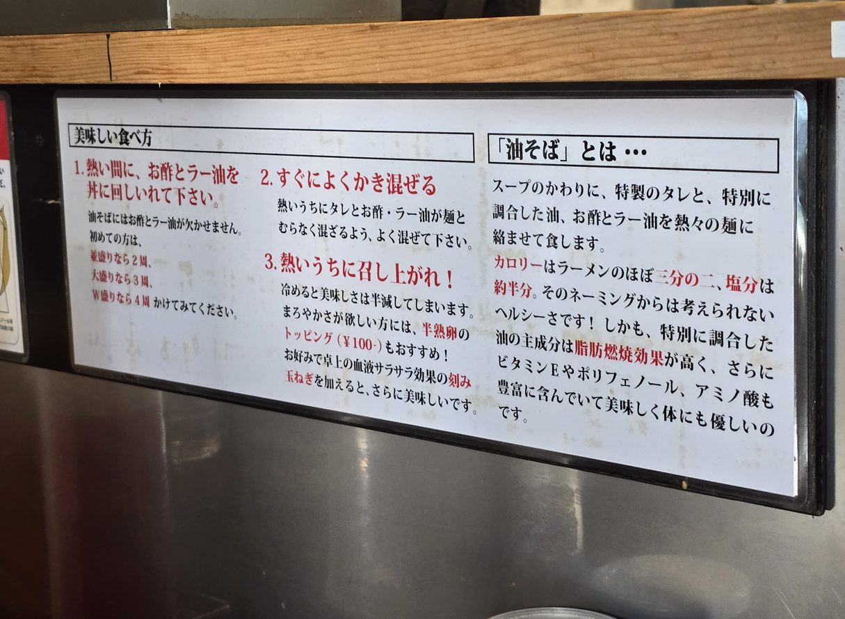 가게 이름 ‘油そば(あぶらそば)’는 직역하면 ‘기름 소바’지만,