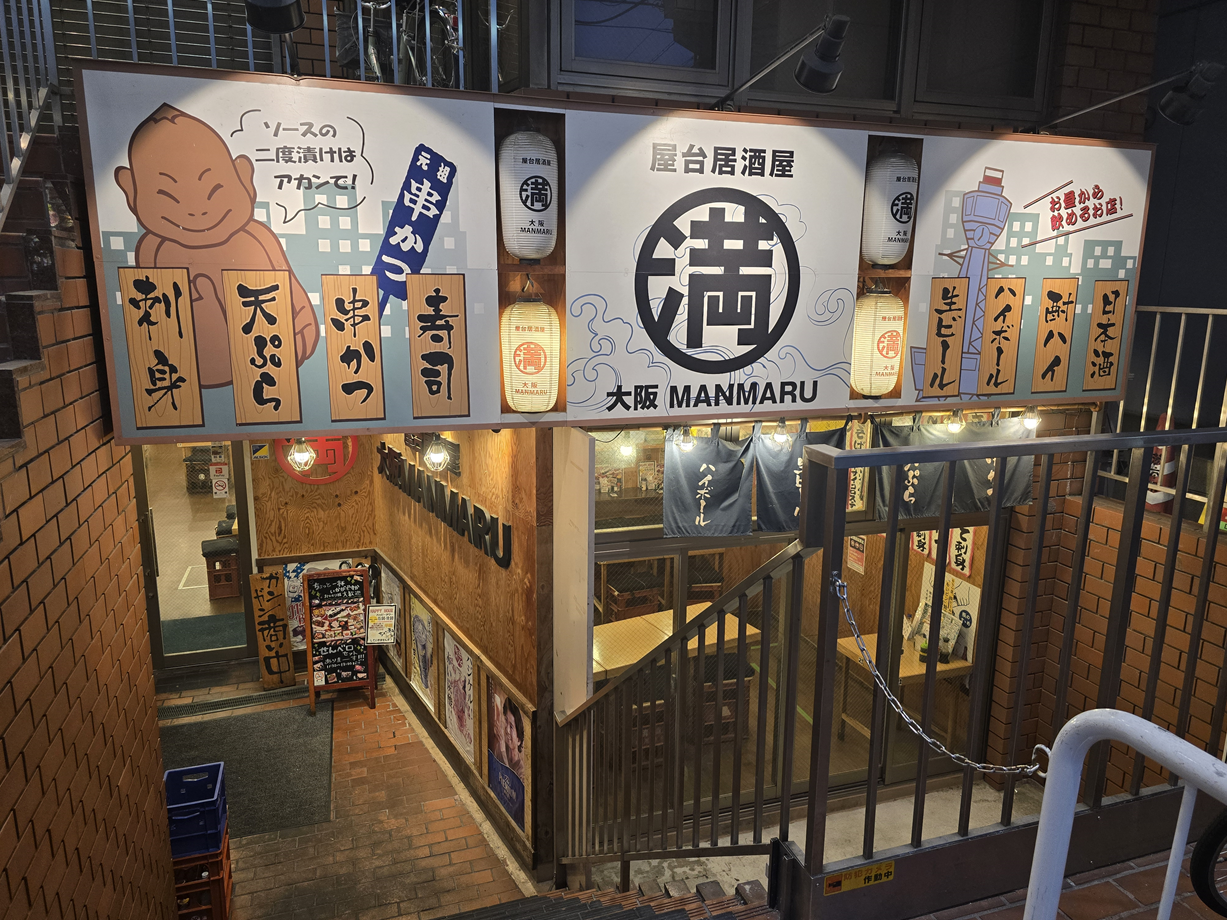 ‘満マル(만마루)’는 오사카를 중심으로 여러 지점을 운영하는 가성비 이자카야 체인점이에요.