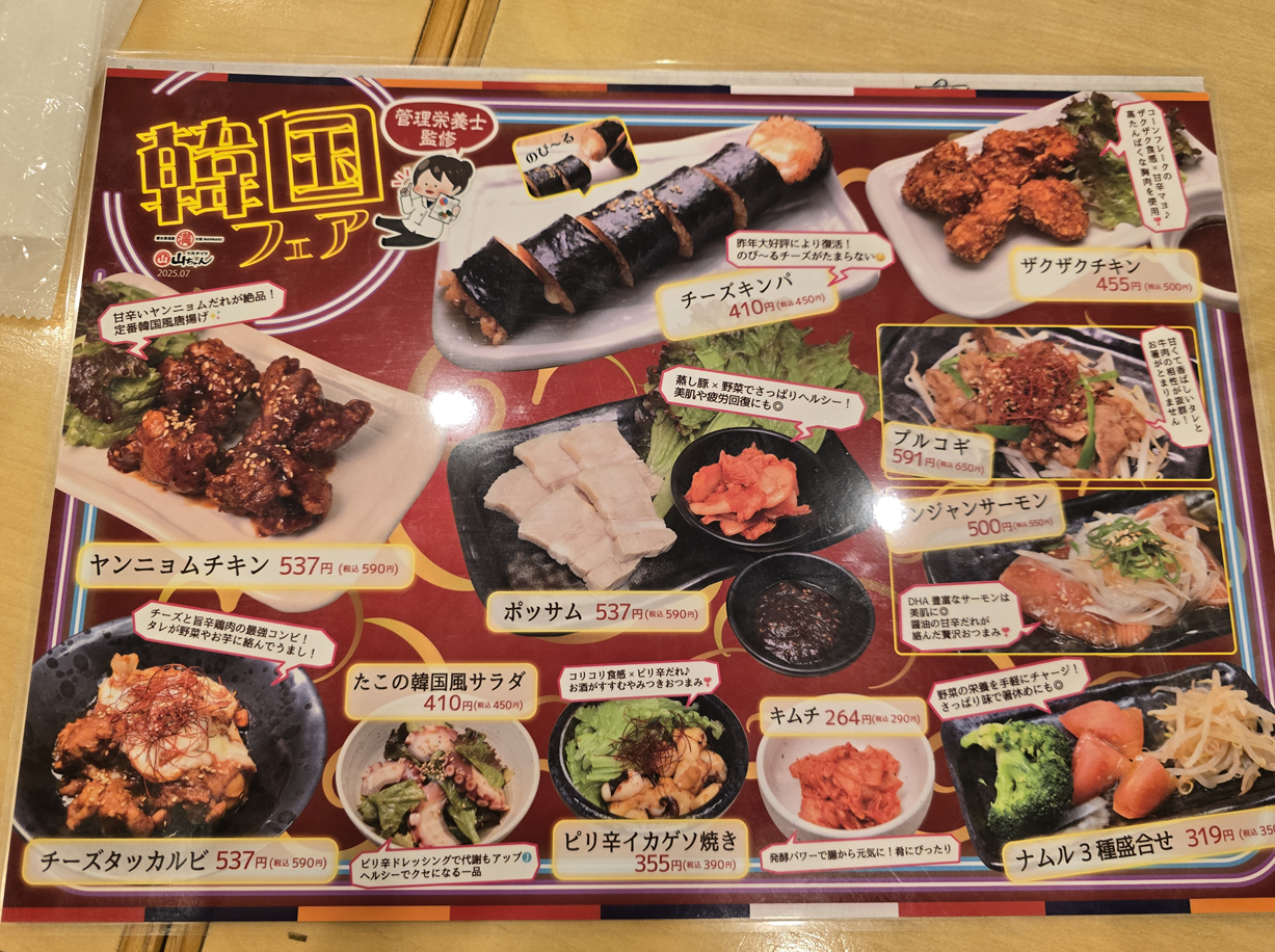 그리고 한국 요리 메뉴가 있었는데 김밥, 보쌈, 치킨, 불고기까지